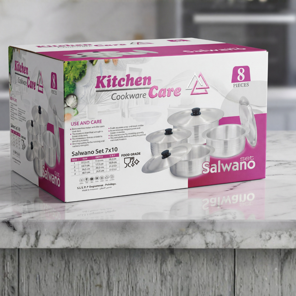 The kitchen care Cookware Set 7x10 is a high-quality cookware collection designed for reliable everyday cooking. Crafted from food-grade stainless steel, this set preserves the natural taste of food while offering long-lasting durability.