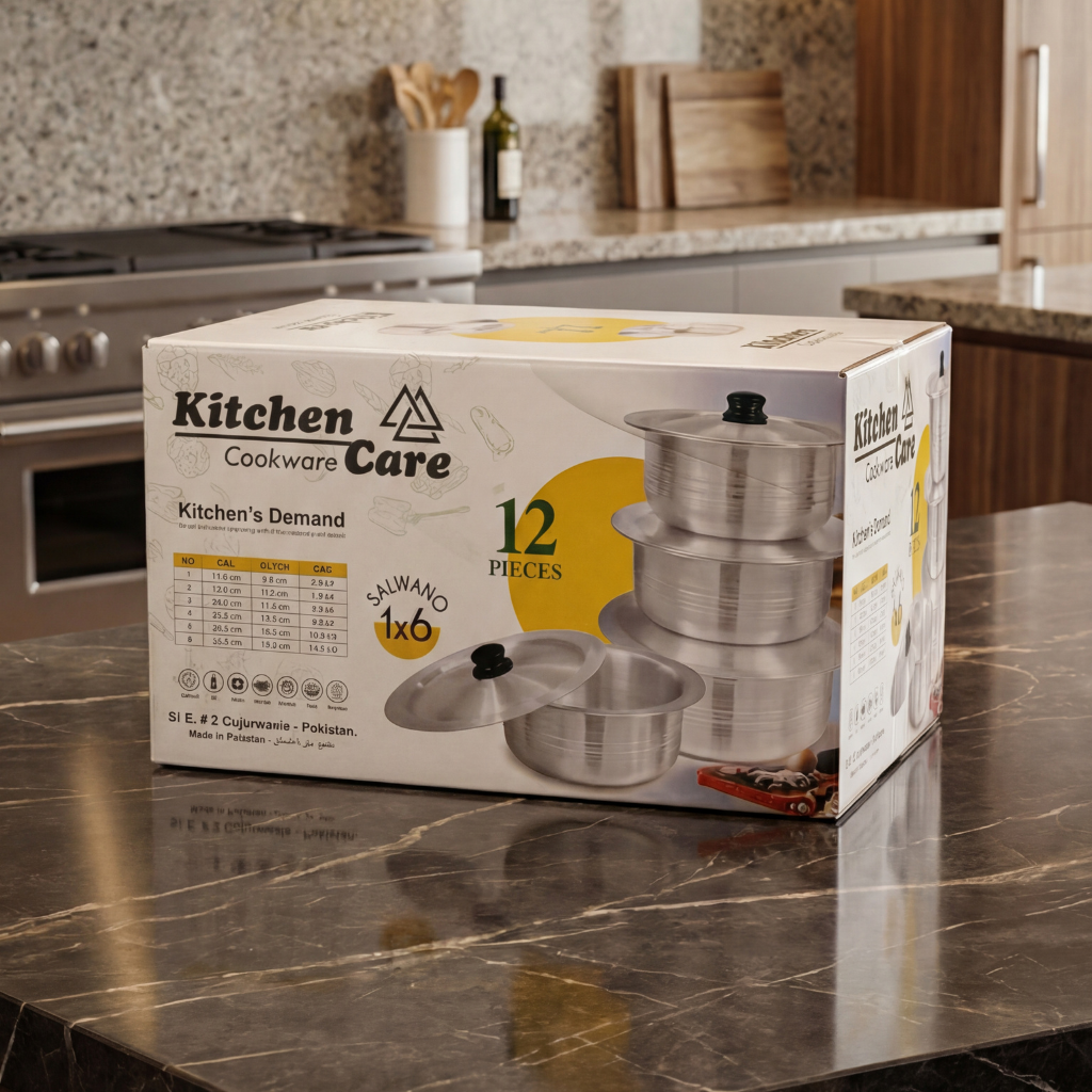This Kitchen Care Stainless Steel Cookware Set – 12 Pieces (Set of 6) is made from durable stainless steel, designed for consistent heat distribution and everyday cooking reliability. The solid construction helps retain heat evenly, while the smooth surface supports easy cleaning and long-term use. Suitable for home kitchens that require practical, dependable cookware.
