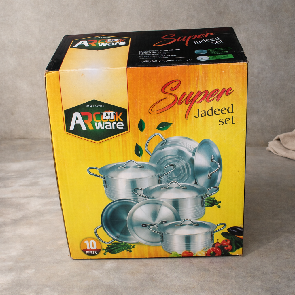 AR Cookware Super Jadeed 10-Piece Pot Set is a robust and essential collection designed for busy home chefs who prioritize quick, healthy, and high-quality meals. This comprehensive 10 Pcs Casserole Set ensures you have the right tool for any recipe, making your daily cooking routine simple and stress-free. With this foundation, you can easily manage family meals and save valuable time.